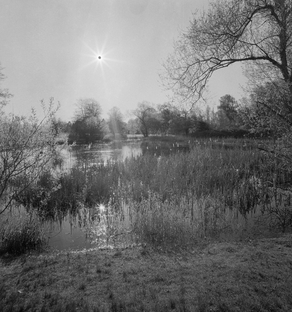 Adams used Kodak Super-XX film, which he called a “fine material of ‘thick emulsion’ type.” He made a side note that modern thin-emulsion films may not respond to the reversal effect in the same way. This became evident to me when I attempted my own Black Sun photograph, only to be disappointed by being unable to make solarization work with contemporary film stocks. I tried a variety of slow films such as Ilford Pan F and Rollei Retro 25, as well as other films like Ilford HP5 and Kodak Tmax. None of them worked. My obsession with making my own Black Sun was undeterred by these failures and I started hunting eBay for Super-XX, which had unfortunately gone out of production prior to 1960 in roll film, but sheet film was still being made up until 1992. I managed to find an unopened Super-XX 4×5 film pack on eBay, which had expired in 1952! Not very encouraging, but I thought I would give it a try anyway. I had never used a 4×5 film pack so I was not sure what to expect. It was only after I received it that I realized that I needed a film pack adapter to put the pack into. Luckily, I had just purchased one recently, which I was planning to adapt into a holder for glass negatives, so I was good to go.